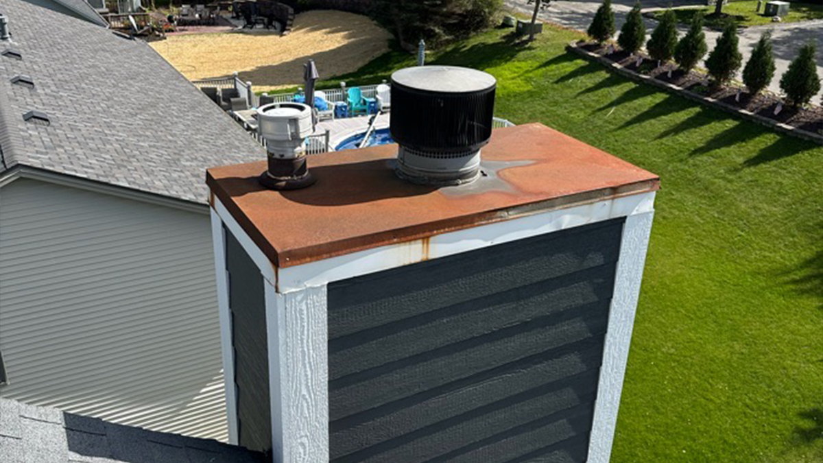 In Sussex WI, we replaced the existing chase cover due to significant rusting and water damage. The original cover had deteriorated and was no longer providing proper protection for the chimney chase. A new custom-fabricated metal chase cover was installed to restore a watertight seal and ensure long-term durability.