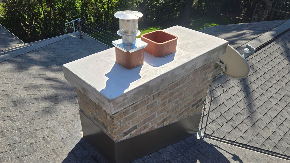 Our team removed the damaged crown and installed a new concrete chimney crown, properly sloped to direct water away from the chimney structure. This upgrade helps prevent future water intrusion, protects the brick and mortar from freeze-thaw damage, and extends the overall life of the chimney.